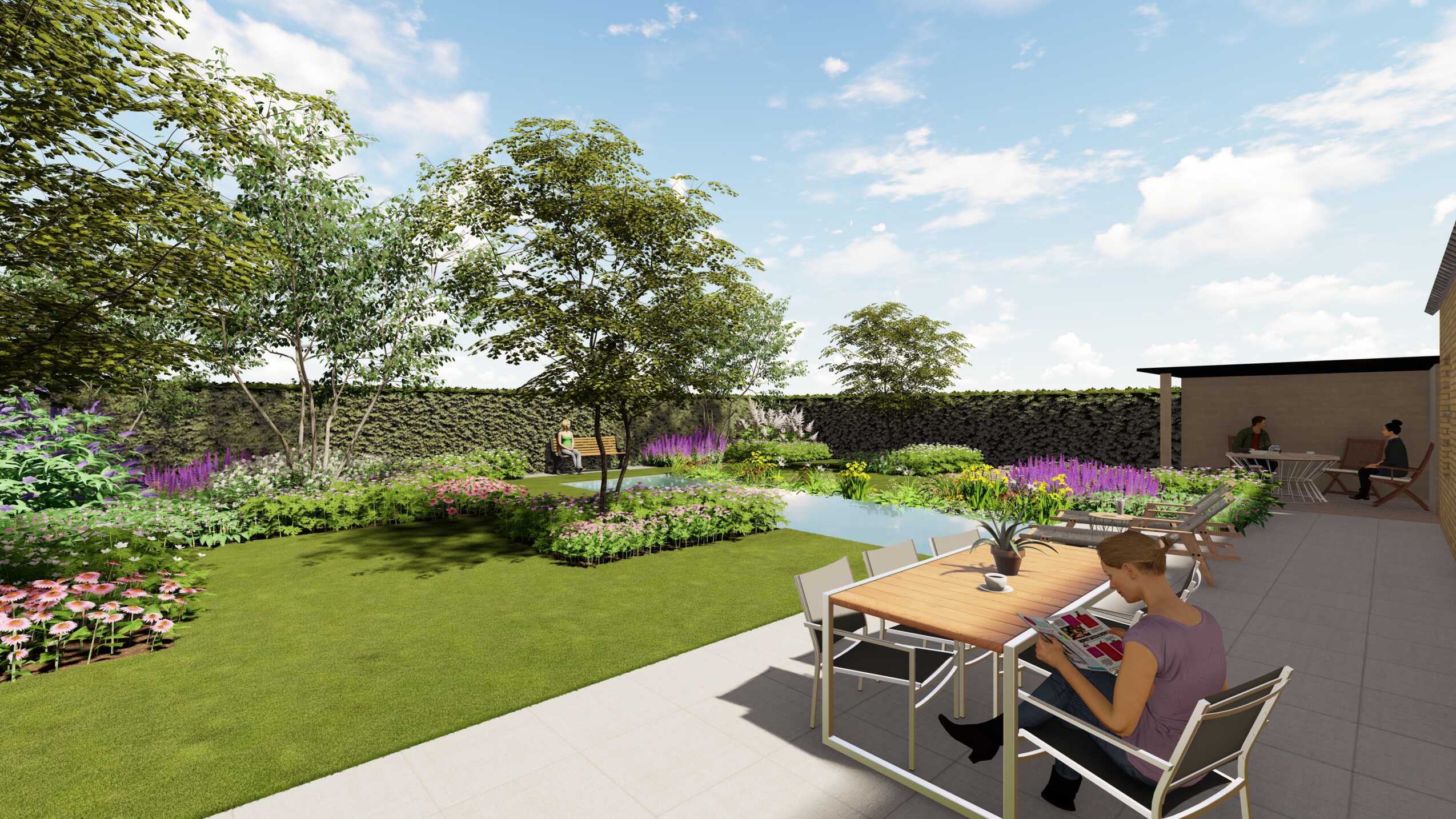 Om een goed beeld te krijgen van hoe jouw tuin eruit gaat zien, maken we gebruik van realistische 3D-visualisties. Hiermee krijg je een virtuele rondleiding door je toekomstige tuin en zie je precies hoe de ruimte wordt ingevuld met groen, bestrating, waterpartijen meer.