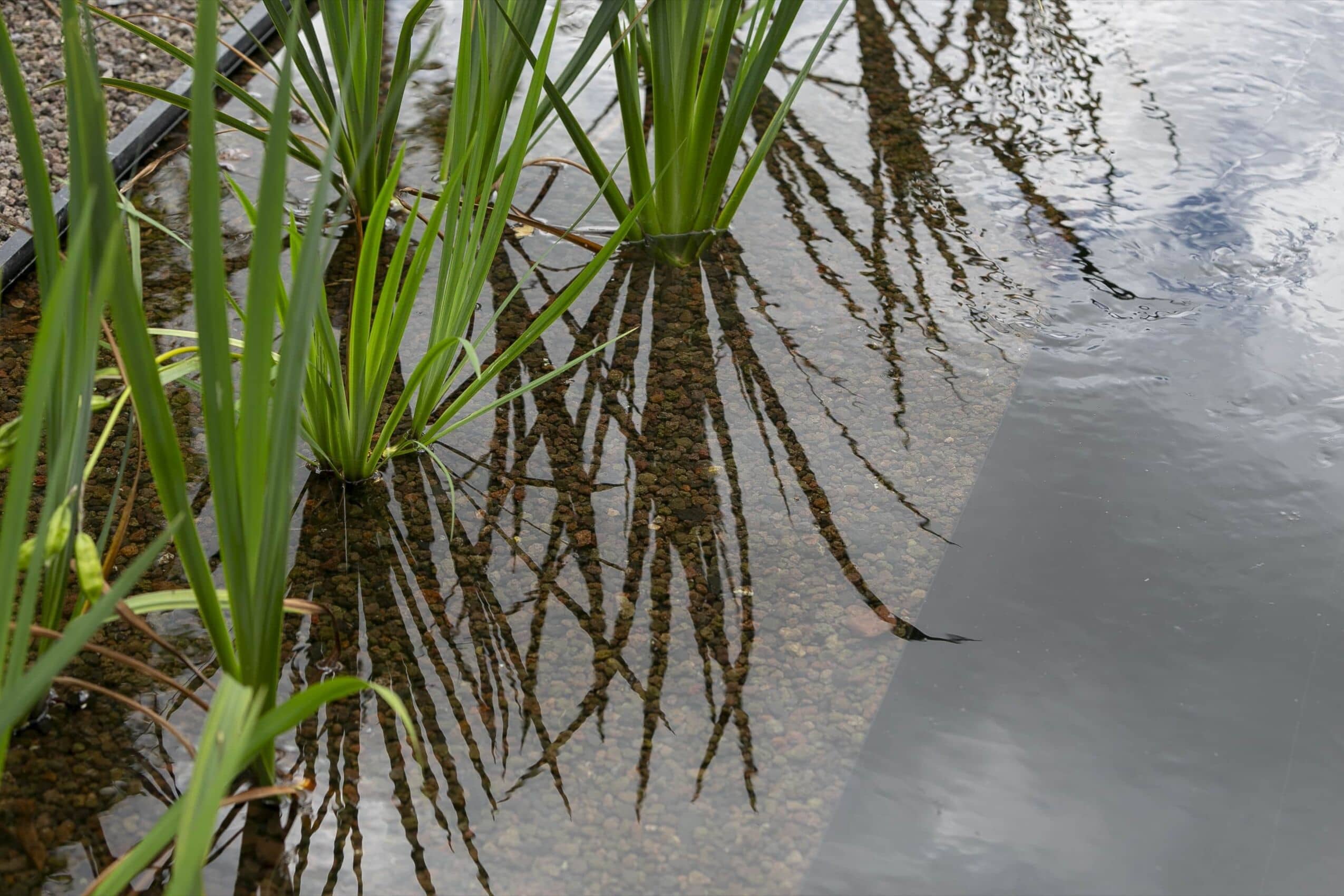 Een zwemvijver bestaat uit een zwemzone en een biologische filterzone met plantenmoeras. Als esthetisch element is het heel mooi en het biedt een ecologische meerwaarde. De zwemperiode is natuurlijk wat korter en de wanden kunnen wat meer aanslag vertonen dan bij een hybride zwemvijver.