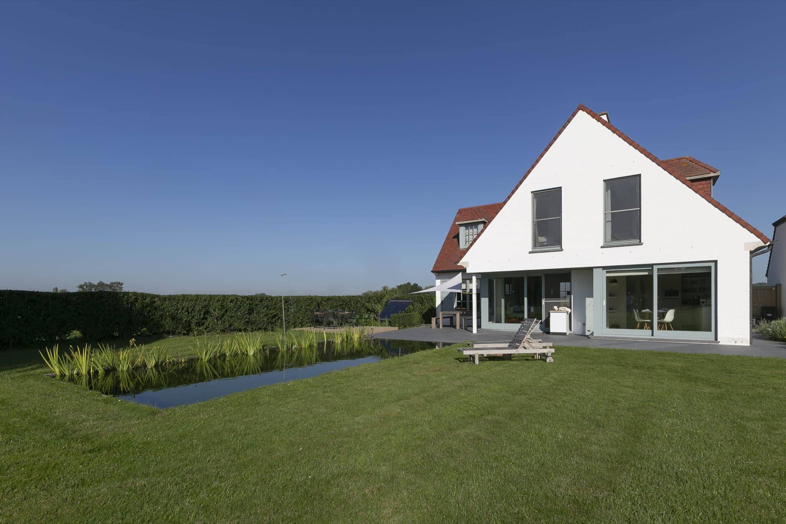 Bij deze karaktervolle pastoriewoning in het Brugse, werd gekozen voor een strak vormgegeven zwemvijver. De zwemvijver is voorzien van een moderne en strakke afboording, waardoor het een elegante uitstraling heeft die perfect past bij de stijlvolle pastoriewoning.